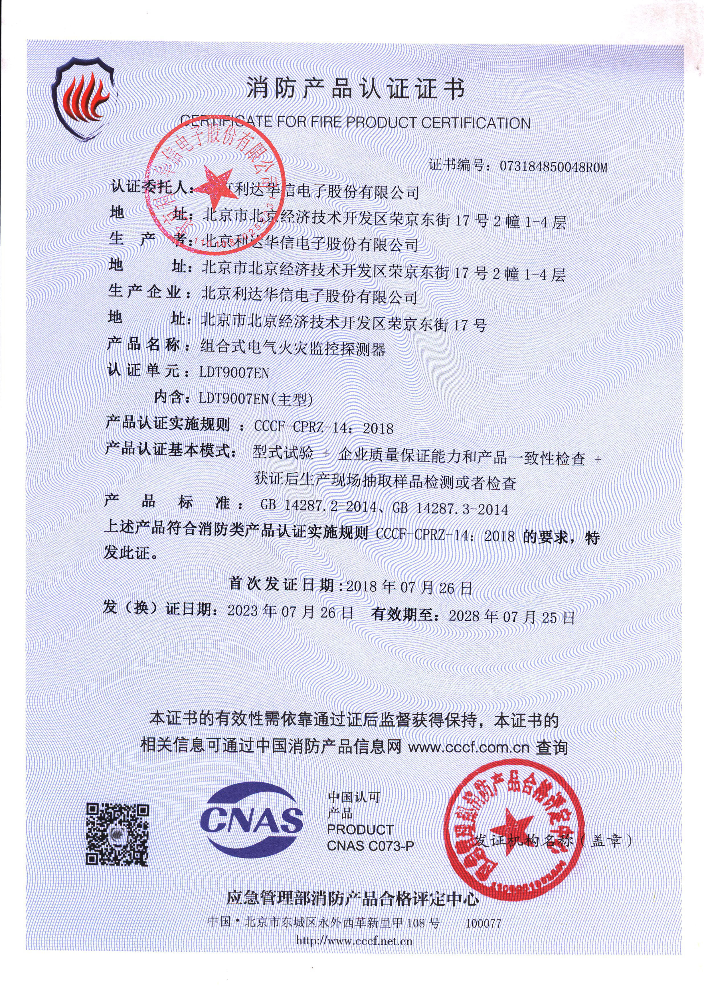 LDT9007EN 組合式電氣火災監控探測器 消防產品認證證書073184850048ROM(蓋公章).jpg